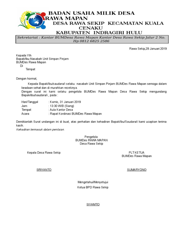 Format surat ajakan rapat persetujuan rancangan perdes undangan rapat bpd desa sariwangi 18 contoh contoh surat undangan rapat resmi terbaru 2019.